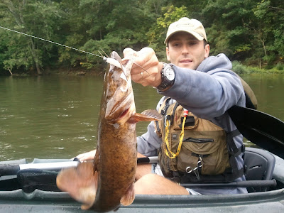 On a time compressed Saturday Morning Brad and I floated from the Dam to Advance Beach. We put in at 6:30am and took out at 10am. They were running 4 gates on the New River side and even the Greenbrier river was running above 75% for a change. We ended up netting 35 total fish using the usual tactics, white G-tails. A few of my fish didn't want to chase and you had to slow the jig down and bounce it off the bottom to get hit. Brad hooked and lost a huge Carp going down the arm, I caught all three species of bass (smallmouth, lagemouth, and spot) and behind Rite Aid I caught a 7lbs. mudcat. When the mudcat hit I thought for a second I had a monter bass.